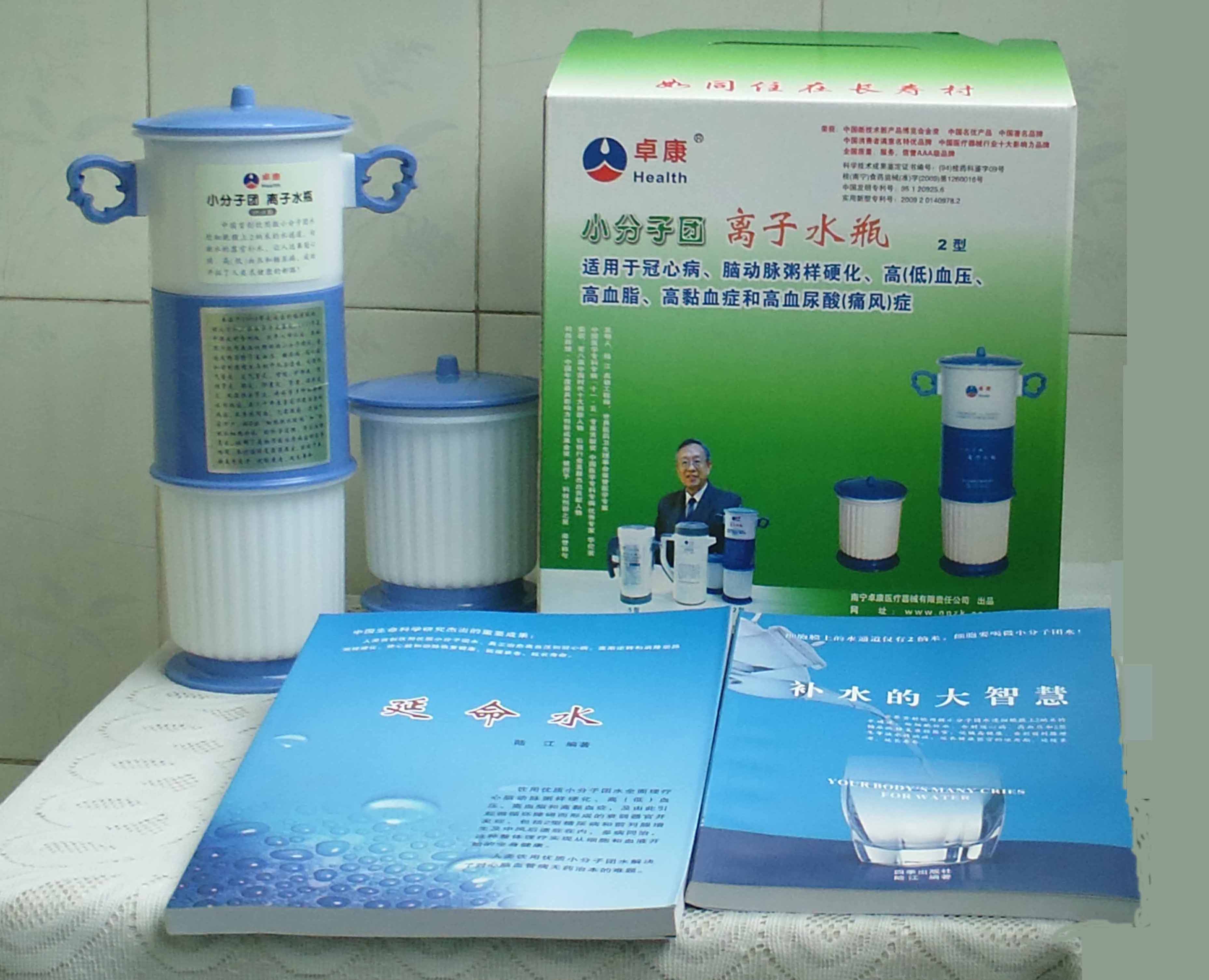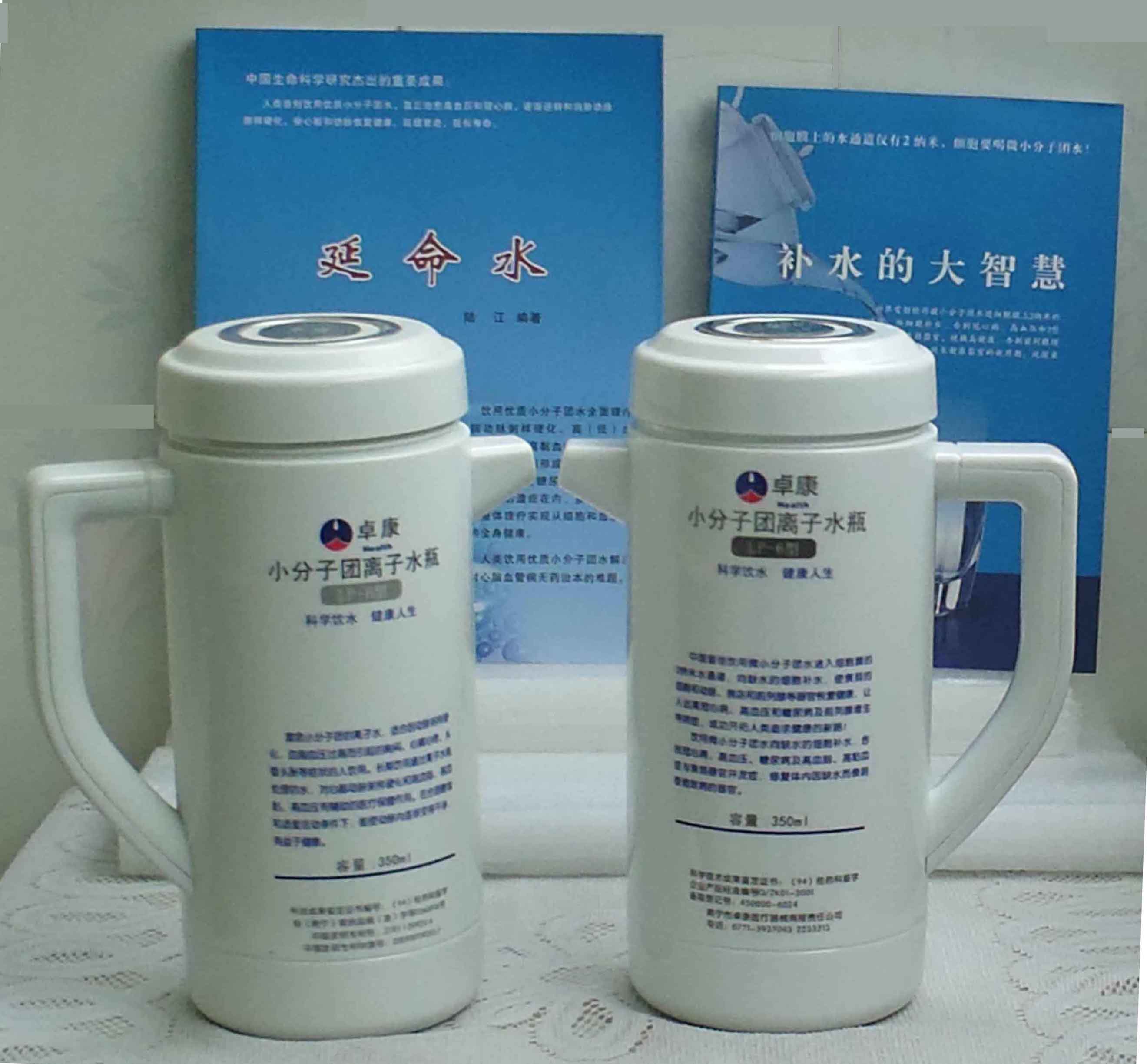 本品大量用戶的使用效果表明,能治愈冠心病、腦動(dòng)脈硬化、原發(fā)性高(低)血壓、高血脂、高粘血癥、高血尿酸癥(痛風(fēng))和2型糖尿病、衰弱器官并發(fā)癥(前列腺增生、腎衰與尿毒癥)及中風(fēng)后遺癥等療效好。產(chǎn)品配信譽(yù)卡。使用壽命30年,不換芯,易清洗。團(tuán)購(gòu)優(yōu)惠。從郵局匯款,匯費(fèi)1%,地址按本頁(yè)下方地址、聯(lián)系人寫(xiě)。從銀行匯款,請(qǐng)點(diǎn)擊[聯(lián)系匯款]欄,從工商銀行匯款,建設(shè)銀行、農(nóng)業(yè)銀行匯款,均免收匯費(fèi),匯款后20--30分鐘內(nèi)發(fā)短信,可用微信轉(zhuǎn)帳,均免匯費(fèi),微信號(hào)即手機(jī)號(hào)13768308380。匯款后,告知你的姓名和地址,我公司聯(lián)系人手機(jī)號(hào)是:13768308380卓康牌離子水瓶為我公司獨(dú)家生產(chǎn),郵購(gòu)產(chǎn)品配《補(bǔ)水的大智慧》彩印書(shū)一本,另配四季出版社出版的新書(shū)《補(bǔ)水的大智慧》一本,并配光盤一張(含央視主持人釆訪陸江的對(duì)話視頻)。目前市場(chǎng)和"淘寶網(wǎng)"上有人兜售假冒的偽品,望讀者審察辯別真?zhèn)危旒僬哓飧`假冒本公司的各種認(rèn)證、獲獎(jiǎng)獎(jiǎng)項(xiàng)、專利號(hào)和外包裝盒上的中英文字,包括科技成果的鑒定意見(jiàn)等,請(qǐng)讀者注意防偽。如何識(shí)別假貨?已經(jīng)買了假貨怎么辦?(請(qǐng)點(diǎn)擊[打假掠影][打假掠影])。